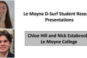 The final presentation in the fall 2025 Natural Seminar Series will be held on Friday, Nov. 21 at 3:30 p.m. in room 100 of the science center when Le Moyne students Chloe Hill and Nick Estabrooks will discuss research they did as part of the D-Surf program. An explanation of the program will also be given for students who are interested.