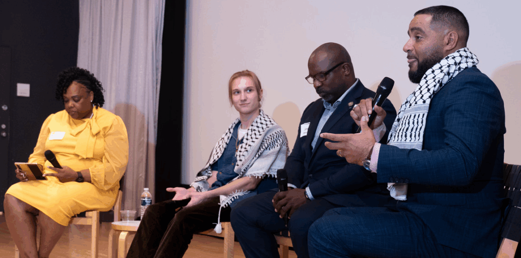 PALM received the Don Shaffer Student Peacemaker Award – named for New York peace activist Don Shaffer – that recognizes a campus Peace Action chapter for exceptional organizing work. Le Moyne’s PALM chapter was recognized for its outstanding organizing work in the 2024-2025 school year. Among the activities PALM was involved with was a presentation by Dr. Mohamed Elfar, who discussed his work with Doctors Without Borders in Gaza and held an interactive event to educate students about the dangers of nuclear weapons. The group also led a workshop and campus-wide walkout for a Day Without Immigrants. Accepting the award was PALM President Syd Kellogg ’26, second from left, participating in a panel discussion at the event.