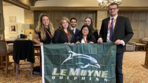 Since its establishment in 2020, Le Moyne’s Model EU has provided students with the opportunity to immerse themselves in the history of the nearly 30-year-old political and economic union. Beyond that, the organization has allowed them to refine their ability to debate, negotiate and work effectively as part of a team. In each of their simulations, whether their most recent one in Bloomington or an earlier one held online, the members of Model EU have developed their capacity to use communication and compromise to forge consensus. They acknowledge that it’s not always easy. Even something as simple as the meaning of the word “negatively” in a proposal can inspire ferocious debate. But with each experience, these students are learning to merge persistence and confidence and grace and diplomacy.