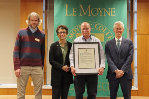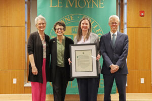 The annual spring convocation at Le Moyne recognizes faculty from all disciplines with awards that recognize academic excellence in a variety of ways, from teaching to mentoring and advising. Recipients are nominated by their colleagues, with awards named in honor of some of the most respected faculty in the College’s nearly 80-year history.